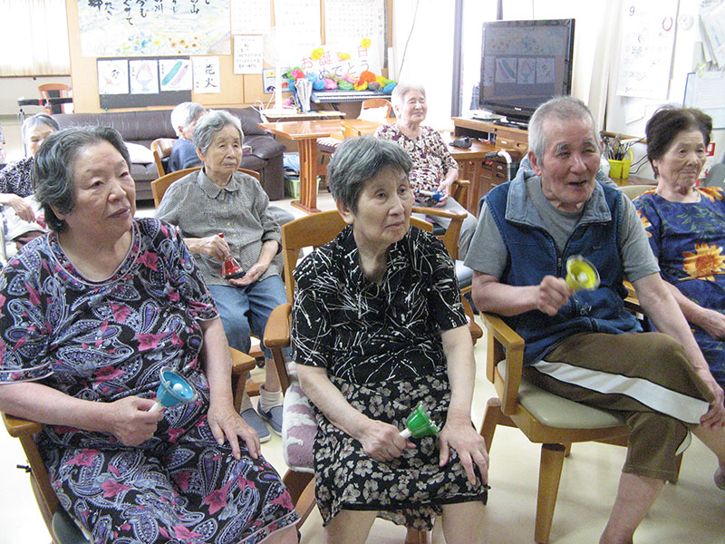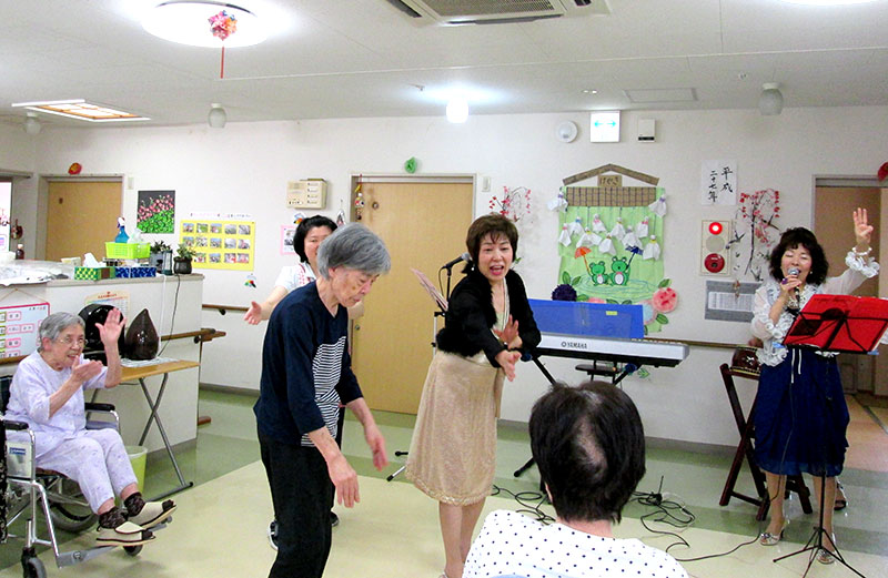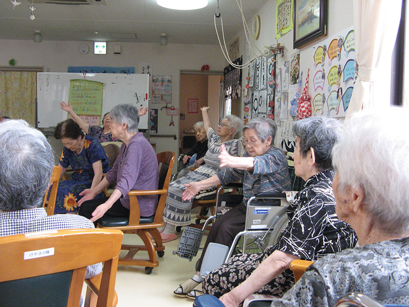 体を動かし、声を出し、頭の体操をすることで、元気で明るく楽しく生活されることを願い、「ここで良かった」の言葉をいただけるように頑張っています。